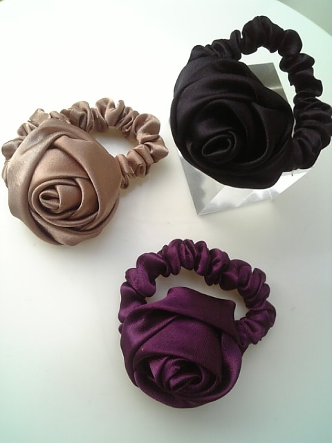 本日新入荷のアクセサリーは3色のバラも美しいヘアシュシュです。